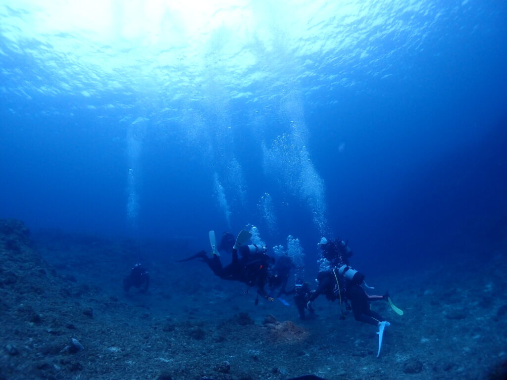 黒島ならではの水面マンタを探しつつ船を移動するもノーマンタ・・・。で、2本目もノーマンタ・・・。